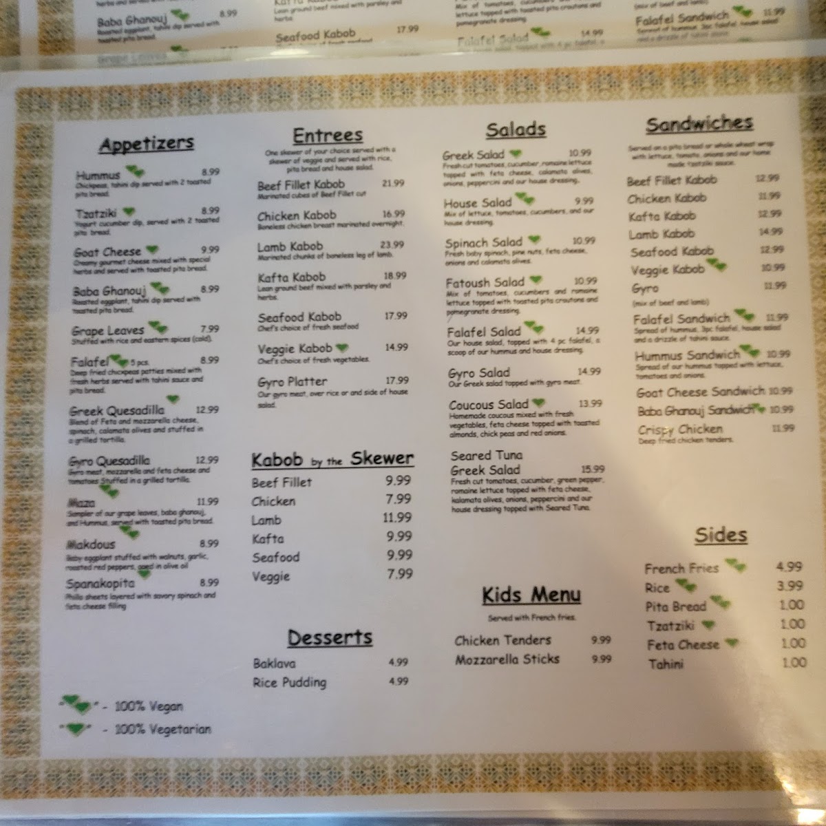 Start your meal with delectable options like the gyro salad or the hummus, both praised for their freshness and taste. The main event often rotates around their kabob platters, showcasing expertly grilled chicken or lamb served over fluffy rice and accompanied by crisp salad. Customers rave about the Baklava, which strikes the perfect balance between nutty richness and sweetness.